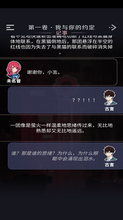 2、在游戏中能看到的只有已知人物的头像,剩下的就是人物间的对话内容,内心独白和对话将以深浅做出划分;