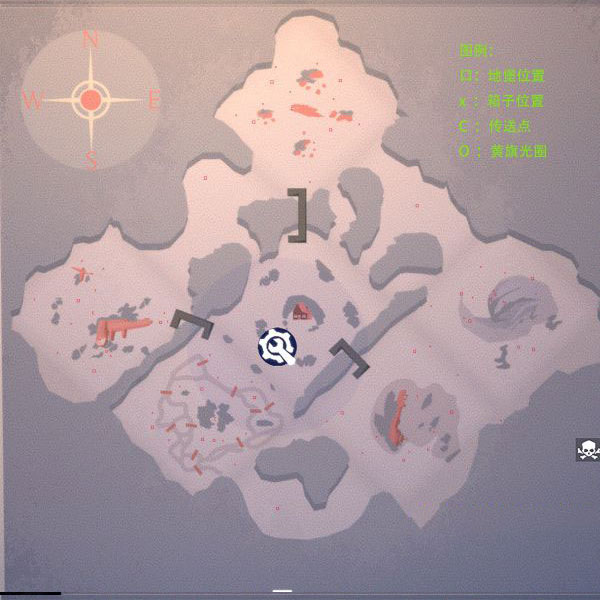 这张图是6张图中最穷的一张图,整个地图周边只有5个地方有地形,WN,NE和S都是只有一个地堡,没有任何箱子,在WN和NE炸桥点的附近还有三狼(WN三白狼,NE三黑狼),打野挖宝的时候一不留神就容易白给。