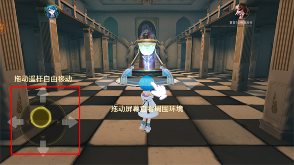 3、左侧移动摇杆可以自由移动,拖动屏幕可以查看周围环境