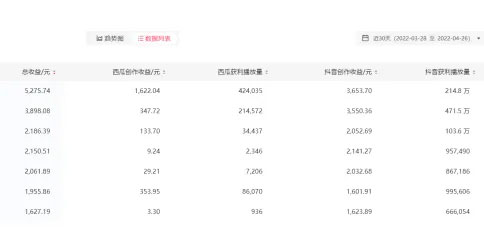 仔细看图的朋友会发现,总收益其实是包含两个方面的,一个是西瓜视频收益,另一个是抖音收益。