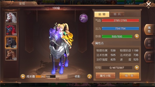 其次,40级开启的坐骑系统对各位英雄来说更是如虎添翼的存在。在骑战中可以召唤爱驹并肩作战,可以蜕变为骑兵获得全新技能,既可万军从中取敌将首级,也可一人独挡千军万马,逆转乾坤,出骑制胜!与此同时,每匹战马还能辅助两名护卫,为护卫添加新的战斗属性;部分马匹还拥有血统技能,玩家在战斗中召唤坐骑后便会触发坐骑所携带的血统技能。总而言之,一匹战马,能让每个战场都充满无限可能。你,值得拥有!