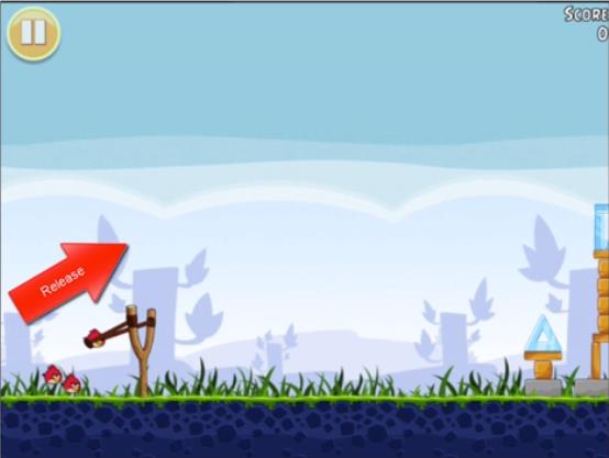 4、一切就绪后松开你的手指。小鸟将飞出冲向一些障碍物并会造成一定的破坏。重复该过程直到把所有小猪都消灭了或者你已经用完了有限的小鸟为止。