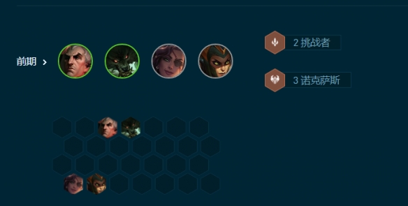 我们这套阵容是加入铁男后的新版高诺克萨斯阵容,铁男带火炮站后排输出即可。潜行者分两边站突后排。乌鸦和诺手站在一起。后排两个输出站角落。