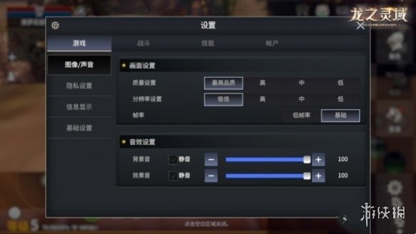 1、进入游戏,在设置界面,点击左侧的图像/声音,然后将画面品质调低即可。