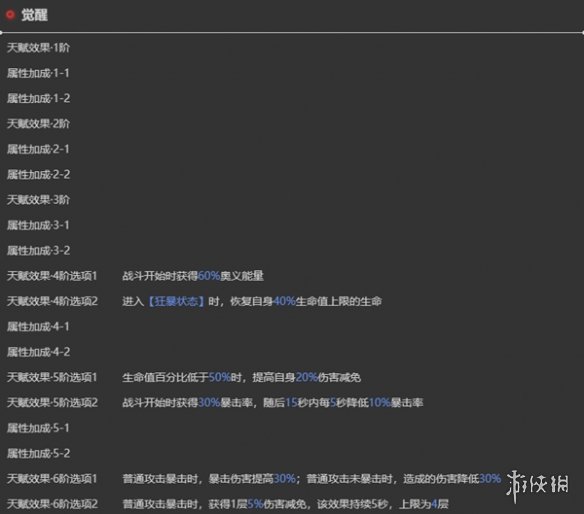 4、“振奋”:造成的伤害随自身生命值百分比提高而提高,80%时伤害达到上限。