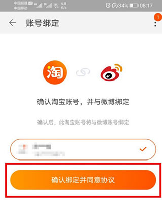 手机新浪微博绑定淘宝的方法如下:登录手机淘宝账号,进去之后就登录到了手机淘宝的主界面。2.点击主界面没庆腔右下角的“我的淘宝”,进入到个人的淘宝账户中心。3.点击右上角倒数第二个齿轮模样的按钮没进入到个人设置界面。4.在这里面找到“账户”这个差源功能按钮枯衫,并点击进去。进去之后可以找到“绑定新浪微博”5.点击“绑定新浪微博”,会有相应的提示页面弹出,淘宝账户是自动匹配的。下面的新浪微博部分是需要手动添加的。6.填写正确的新浪微博用户名和密码后,选择”立即绑定“即可完成。