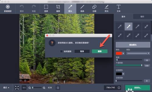 如果要撤销箭头或者其他的符号,则点击顶部的撤销符号。点击软件叹号可以查看截图的详细信息。