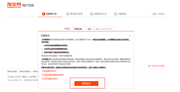 1、游览器打开,在输入框输入“淘宝网”进行搜索,找到官网标识的网站。 2、点击进入淘宝网官网。 3、点击屏幕左上角的“免费注册”进入淘宝账号注册页面。 4、在注册页面会首先弹出一个“用户协议”,可以仔细阅读一下,一般我们点击“同意协议”即可。 5、选在所在的地区电话区号,并且填写手机号码,拖动滑块验证手机号码是否能用于注册,然后使用该手机接收验证码进销缺行注册。 6、短信验证成功后,根据提亏斗辩示设置自己账户登录名、登录密码销返等账户信息,即可注册成功。