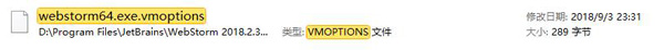 17、在第14步的目录下面找到【webstorm64.exe.vmoptions】文件,鼠标右击选择【打开方式】。