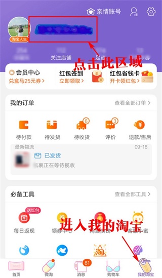 1、打开淘宝,点击页面右下角的“我的淘宝”。