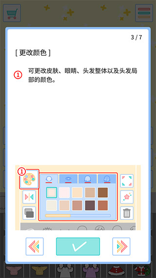 这款游戏怎么玩,那么小编就给大家介绍一下这款游戏的操作方法。游戏中玩家可以将少女装扮成你喜欢的各种样子,可以根据自己的想法改变全身,不管是眉毛、眼睛、嘴巴、头发、手势、发饰、衣服、裤子、鞋子、帽子等,都有几十种款式任你选择,商店里还有更多好看的服装、配饰等,喜欢的话也可以在里面购买。可以将装扮好的保存下来在装扮好友时使用,也可以为以装扮的人物用对话框、文字等来撰写属于自己的故事!