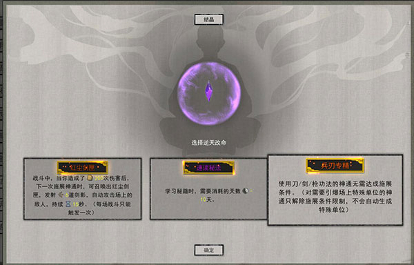 鬼谷八荒逆天改命选什么?逆天改命哪个厉害?很多玩家在练气筑基逆粗滚宽天改命的时候不知道如何选择,一方面推荐玩家在选择时间善备正用存档。其次就是前期的逆天改命很少有好的选项,一般来说加好感、防御的天命都可以刷一下,到了结晶和金丹随随便便突破逆天改命都是好的。比较强力的天命例如【兵刃专精】,可以使得刀/枪/剑功法神通无需达到施展条件,【急速代谢】也是不错的选择,如果刷到的话可以选。鬼谷八荒逆天改命词条怎么刷在选择之前进行存档然后重复岩亮读档即可刷新词条了,直到刷新出自己满意的词条位置。