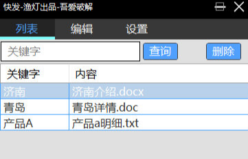 为说明使用内设三条关键字 济南 青岛 产品A,对应的文件也在安装文件里