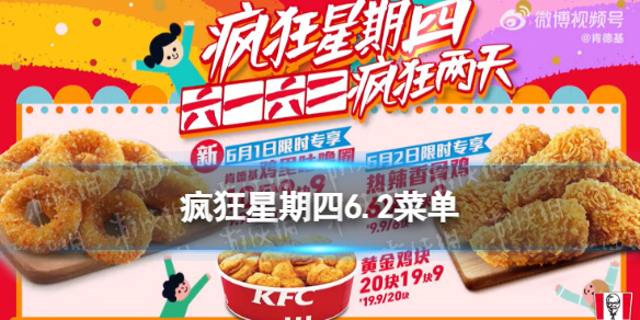 2023年6月1日肯德基开启的疯狂星期四活动将持续两天,那么6月2日的疯狂星期四菜品有哪些,又有什么优惠呢?接下来就让我们一起了解一下肯德基疯狂星期四本周有哪些菜品吧。