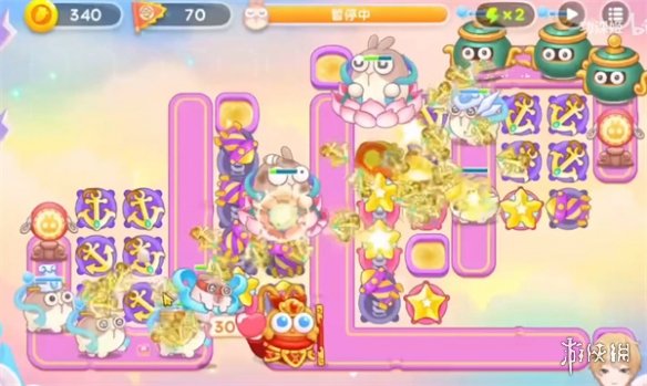 5、第五波会涌现大量的小怪,我们需要补充输出在中间的位置上,金币优先给船锚和星星炮台进行升级。