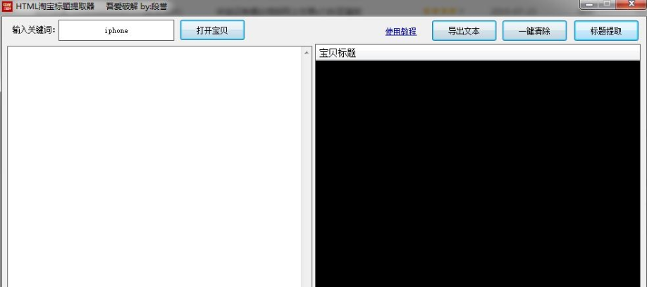 以上就是HTML淘宝标题提取器的全部内容了,软件爱好者为您提供最好用的软件,为您带来最新的游戏!