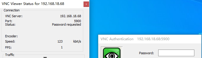 设置完毕点击“连接”按钮,此时软件会显示连接的状态窗口,显示“PasswordRequested”,接着弹出一个VNC验证对话框,在“连接期间密码”后面填入对方设置的密码,单击“登录”按钮,就可以成功连接并可以远程遥控了