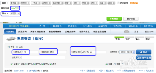 设置好席别,车次,添加好乘客,选择好出发地,目的地,出发时间,如下图