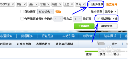 点开更多选项,勾选偿试预订下铺,然后开始刷票,如下图