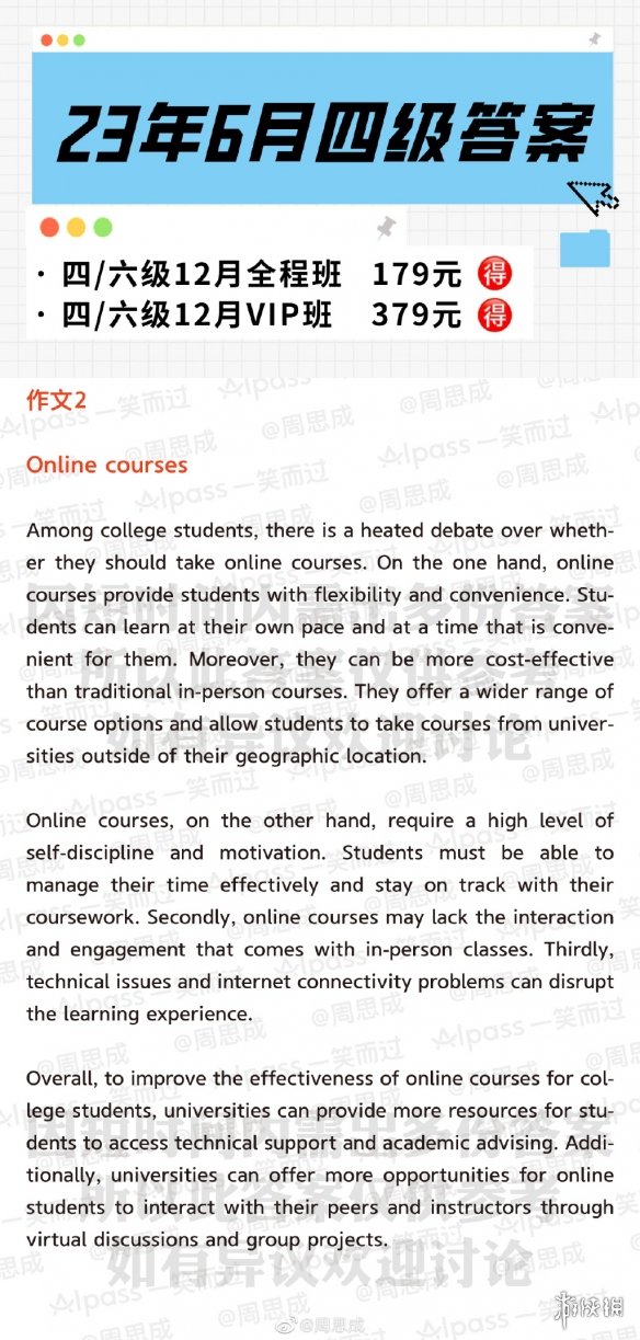 四级作文2023年六月范文是什么样的?2023年六月的英语四级考试已经落幕,本次四级考试作文是网课、人际关系以及社区服务三种,接下来就让我们一起了解一下范文吧。
