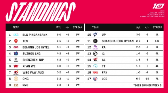 6月17日下午15:00,2023英雄联盟职业联赛(LPL)夏季赛第三周第六天的比赛即将到来。