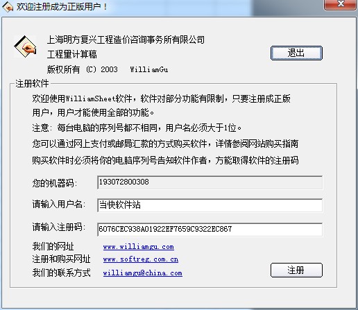 1、请先运行“setup.exe”安装源程序。默认安装路径“C:\Program Files\工程量计算稿”。2、可能系统要求重启系统。3、再将“工程量计算稿圆手耐注册机.exe”复制到“工程量计算稿”文件夹下。4、启动薯答“工程量计算稿”,此时要求注册,复制机器码待用。5、运行“工程量计算稿”文件夹下的“橘春工程量计算稿注册机.exe”,粘贴入机器码,计算出注册码。6、复制、粘贴、注册完成。