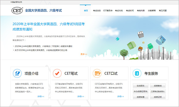 中国教育考试网入口地址是:http://cjcx.neea.edu.cn/html1/folder/20051/1156-1.htm由于同学们的考研、面试、晋升等需要,往往要提供英语四六级成绩证明。而英语四六级成绩查询入口目前有2个,均可以查询往年英语四六级成绩,以下是具体入口和方法。官方入口地址是:http://cjcx.neea.edu.cn/html1/folder/20051/1156-1.htm,选择考试项目,输入姓名、身份证号码、闷伏验证码,点击查询就可查询到往年英语四六级成绩,如还需要成绩证明,可以看下面第二个入口。如果大家查询到成绩后还需要补办往年英语四六级成绩证明,可以选择以下入口地址:http://bbcjzm.neea.edu.cn/可以办理全国外语水平考试(WSK),全国大学英语四、六级蚂顷携考试(CET)成绩证明。补办成绩证明乎睁为免费项目,补办成绩证明书以特快专递(EMS)方式寄出,邮寄费为20元。登录系统后,按系统要求选择考试时间、考试项目;并输入准考证号、姓名和身份证号中的任意二项。系统在用户提交申请后将对提交资料进行审查,审查合格并在缴纳邮寄费用后即视为办理成功,办理成功后10个工作日内按用户提供的地址寄出成绩证明书。