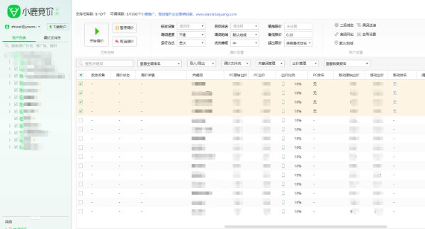 操作简单,用户将点睛推广账户添加至小鹿竞价软件中,设置调价规则后,一键启动竞价,系统会自动完成所选关键词的竞价排名,简单而又高效。