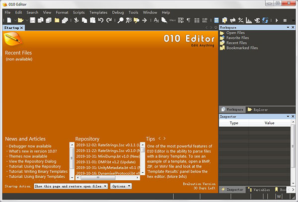 010Editor 10的推出更是在软件的功能基础上进行了创新优化。软件是一款专业的文件编辑器软件,它可以帮助用户快速的编辑任何的文件的内容,支持编辑包括XML、HTML、Unicode和UTF-8文件、C / C ++源代码、PHP等文本文件,并且还有无限的撤销、强大的编辑和脚本工具;不过软件最擅长的还是二进制文件的编辑,它可以使用二进制模板将文件解析进行分层,软件功能强大,几乎可以解析所有二进制文件格式,和其他的软件相比,这款软件所运行的二进制模板结果更容易理解和编辑,对于从事编程的用户来说,软件能够帮助他们节省更多的时间,省去更多繁琐的过程,从而提供工作的效率,是一款既强大又专业的文件编辑器软件。