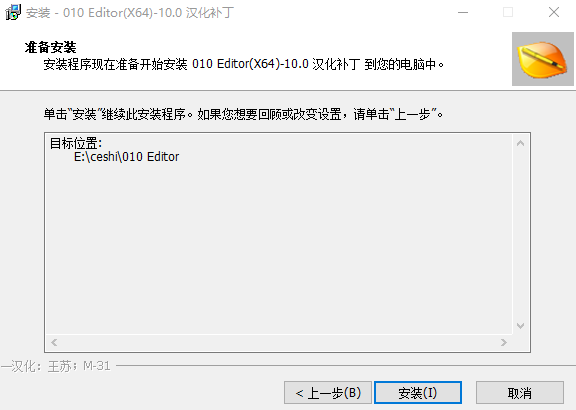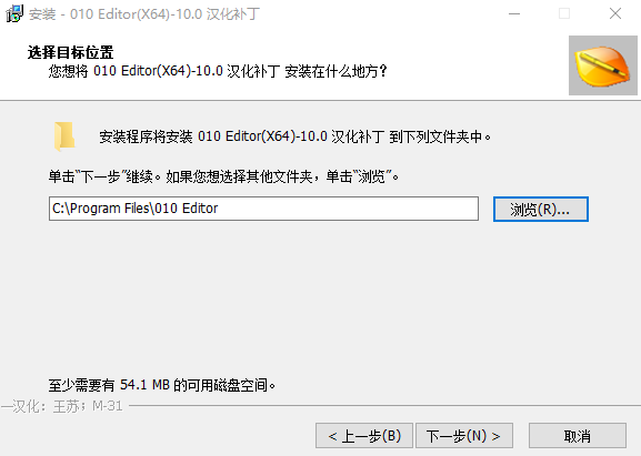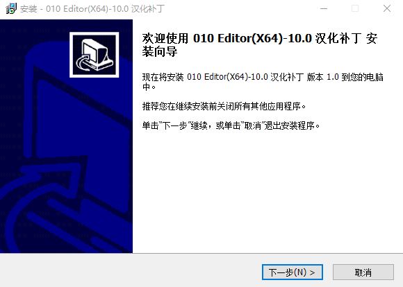 9、打开软件安装包中的汉化软件,双击运行“010Editor_10.0.0_64bit_Patch.exe”软件,进入下图情况;
