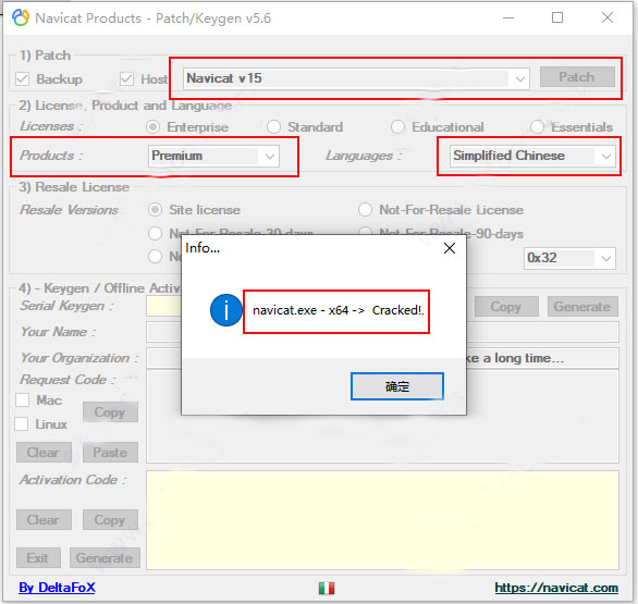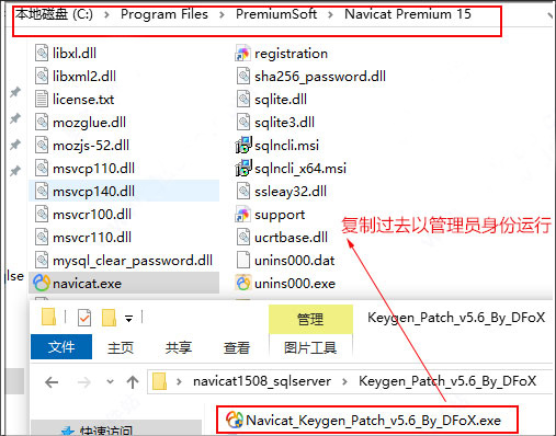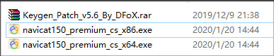 1、下载解压,得到32位和64位navicat premium 15中文原程序和patch破解文件;