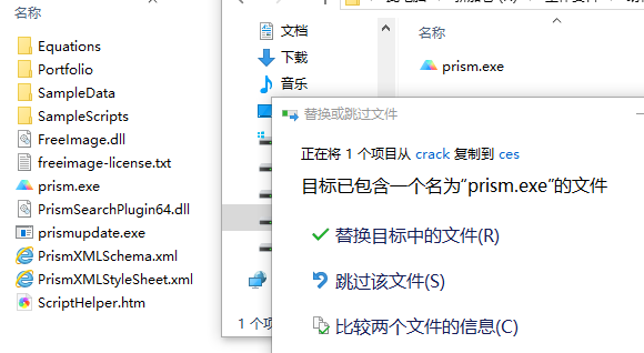 5、接着就是对软件进行破解,然后将crack文件夹内的“prism.exe”复制到软件安装的路径下并进行替换,如下图;
