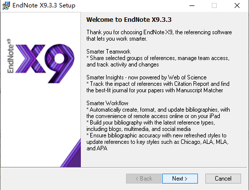 前言:乱厅返此版本的软件安装包附加激活教程我可以给您一份,不过仅供个人使用,切勿传播,希望可以帮助您。哗饥点击下EndNote X9 for Mac破解版安装教程1、endnote x9 大客户版软件包下载完成后打开,双击【Install EndNote X9】进行安装。2、点击【install】开始EndNote X9 安装程序。3、进入EndNote X9 for Mac安装程序,点击【next】。4、阅读EndNote X9重要信伏禅息,然后点击【next】。5、endnote x9 大客户版安装成功,点击【done】。注册成功,永久破解,请尽情使用。