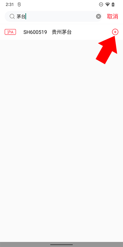3、然后搜索股票名称或者直接输入股票代码,之后点击后方的添加按钮