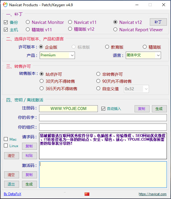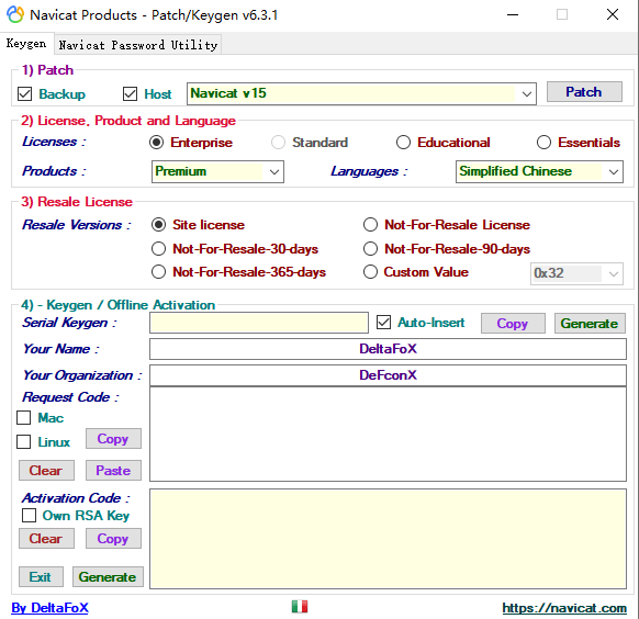 Navicat Keygen Patch DFoX是一款集合了数据开发软件Navicat premium全系列解锁注册的补丁文件,相信很多从事编程开发的朋友使用的比较的多,这是由国外大神DFoX制作,软件主要使用适用于数据开发软件,它能够帮助用户解锁Navicat全系列的文件资源,可以无需另外的注册码就可以轻松的注册激活软件,而且软件使用非常的简单,只需要简单的设置就可以轻松的完成软件的注册激活,如果您需要Navicat注册机的话,那么就千万不要错过这款注册机文件哦。