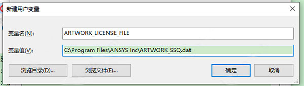 10、创建环境变量ARTWORK_LICENSE_FILE指向 \ ARTWORK_SSQ.dat(默认情况下C:\Program Files\ANSYS Inc\ARTWORK_SSQ.dat)