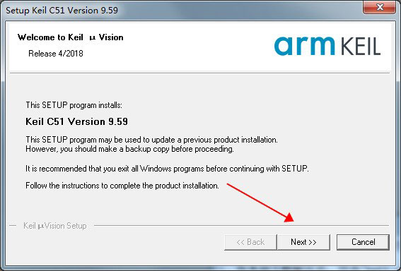 1、在本站下载解压后,双击"keil_c51v959(180509版).exe"开始安装