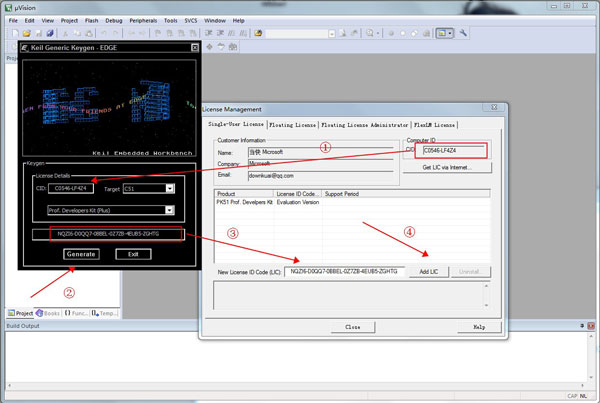 1. 安装Keil C51 V8.16版本,即uV3 2. 打开uVision3,点击File---License Management...,打开License Management窗口,复制右上角的CID 3. 打开注册机, 在CID窗口里悄好填上刚刚复制的CID,其它设置不变 4. 点击Generate生成许可号,复制许可雹运神号 5. 将许可号复制到License Management窗口下部的New License ID Code,点击右侧的Add LIC 6. 若上方的Product显示的是源亏PK51 Prof. Developers Kit即注册成功,Support Period为有效期,一般可以到30年左右,若有效期较短,可多次生成许可号重新注册。