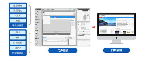 您可以在系统中轻松画出企业门户,灵活、方便、个性的进行企业内外部信息聚合。