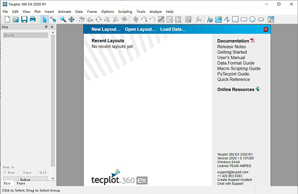 12、重启电脑后即可完成破解,就得到Tecplot 360 EX 2020破解版,然后就可以运行使用,并支持无限制免费使用。