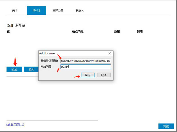 并输入key和site message,点击确定: