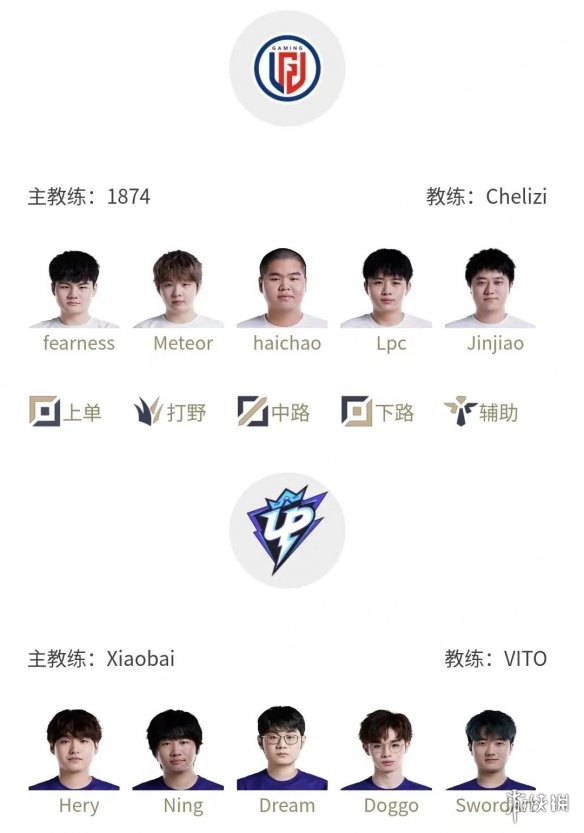 对战情况为:LGD vs UP、AL vs TES、RNG vs WBG,以下为各队比赛时间以及首发阵容名单。
