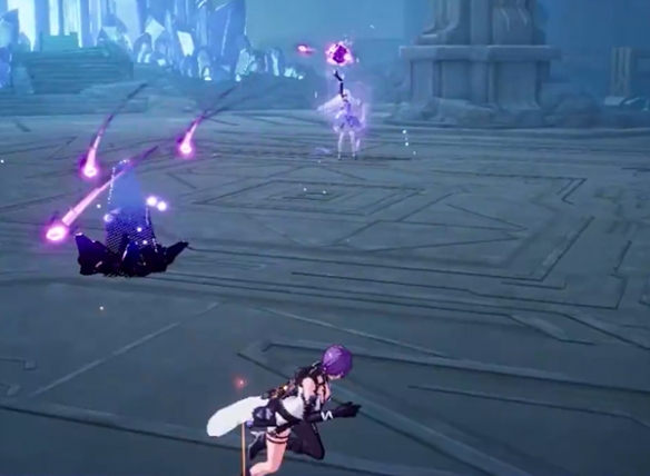 1、在剧情模式中,魔女蜜丽亚本体的技能有三种,第一种会使用跟踪飞弹和地刺进行组合攻击。