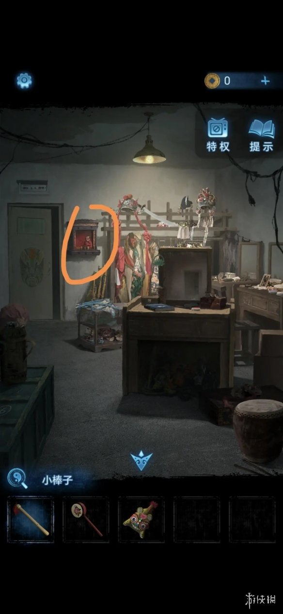 进入门内,点击桌子,获得小棒子。