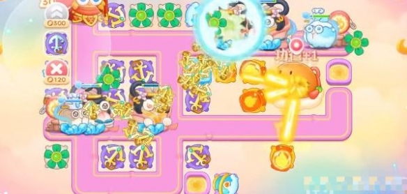 3、左侧可以买船锚,因为攻击距离远且有反弹到其他障碍物的效果,右侧建造火瓶用来专心清理障碍物。