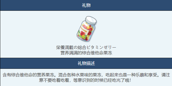 蔚蓝档案综合维生素软糖属于功能性高级礼物,里面有多种口味的软糖可供各位选择品尝,而且与角色时雨的搭配度最高,下面小编就来给大家具体介绍这件三星物品。