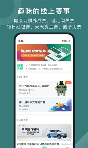 创新7天健康挑战赛、健走闯关赛、团队印花赛等运动赛事,从未发现运动竟然如此有趣。