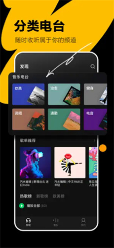 学习/运动/打游戏/通勤途中时想听歌?想听嘻哈/摇滚/电音/R&B?分类电台帮你随时随地,快速找到适合的音乐。