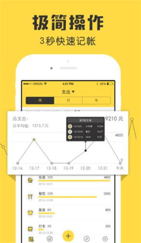 3秒钟记账:极简的操作流程,让你3秒钟即可完成一笔记账操作。