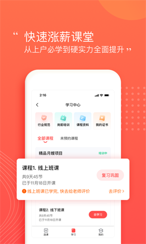 2、阿姨课堂:博主直播,上户指导,学习练习同步进行,专业技术上升知识。